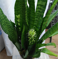 Сансевиерия цветет. Не всегда и не часто. Вам повезло. Не трогайте цветок (он липкий) и радуйтесь. Вечером он пахнет, как ночная фиалка. Уход за растением не меняйте. Подробнее .
