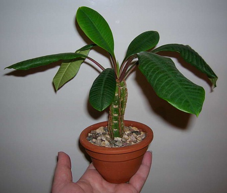 Настасья Филипповна, Всё правильно - резать вполовину, сок смыть, денёк подсушить и сажать в маленький горшочек ( у меня два трёхгодовика сидят в 7см глинянных горшках), НО НЕ ЗАГЛУБЛЯТЬ СТВОЛИК - только по место начало роста корней или чуть выше, если субстракт для кактусов (быстросохнущий). И не пугайтесь, если листики опустит или скинет один, через 7-20 дней придёт в себя и начнёт расти. Я укореняю под лампой флора и смачиваю не сильно, по состоянию. А когда начнёт расти - беспроблемная растень! А 9летний сидит в 18см горшке уже 4 года - я только сверху землю меняю и подсыпаю чуть выше предидущего уровня, стоит вдалеке от окна, только на 2-3 месяца переезжает поближе к солнцу! Ух,