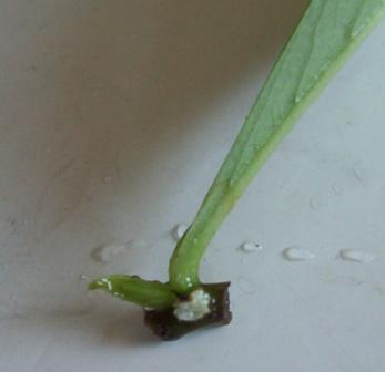 Мой баобабик из семечка, пытаюсь формировать, чтобы ветвился, а он не хочет, все вверх растет. Обрезая последний раз новую верхушку (один лист и 1 см побега) просто так поставила в воду. Через неделю смотрю - около листика что-то вроде каллуса.