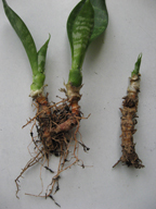Не выдержала - раскопала, посмотрела корни. Вроде мокрых нет - они все сухие. Значит, гнили не было?! У двоих корни нормальные. У третьего отростка какая-то трубка вниз уходит и внутри она явно полая и очень сухая сама по себе, как папиросная бумага. Самих корешков у этого третьего мало. Как это понять? Что с корнями? (вид растения - Сансевиерия Хана, т.е. короткий щучий хвост).