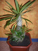 Пахиподиум, подрощенный, сантиметров 20 - 25 в высоту, ему года 2. Проблема следующая: последение несколько месяцев (3-4) листья немного отрастают, затем чернеют, на них образуется какой-то налет (...или это выделения листа), похожий на крупицы песка или сахара, и опадают. На макушке растения листьев вообще не осталось, есть несколько штук в районе середины стебля, но вчера заметила, что некоторые из них постепенно желтеют и опадают. Но в высоту он продолжает расти. Знатоки, скажите, что с моим растением? Живет на окне (всю жизнь там обитает), прямые солнечные лучи на него попадают часа 3-4 в сутки, в остальное время окно хорошо освещено (но прямых солнечных лучей нет).