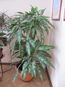 Присоединяюсь к хвалебной оде аглаонеме. Вот моя. Покупал около 2х лет назад отросток. Сейчас высота 70 см. И три мамонтёнка от корня растут. Стоит на западном окне за занавеской, в третьем ряду растений от окна. И цвела всё лето. [IMG][/IMG] [IMG][/IMG]
