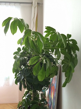 Здравствуйте, уважаемые форумчане! Помогите, пожалуйста, понять, что происходит с моей шеффлерой и как ей помочь. Месяц назад я перевезла растение в новую квартиру, и она стояла близко от батареи и у окна, которое часто открывалось. В промежутке между двумя квартирами шеффлера стояла у моей мамы, у которой многие растения болеют, хотя стояла в изолированной комнате. Вот уже неделю шеффлера сбрасывает листья вместе с веточками, последняя копна веточек, которая выросла, пока она стояла у мамы, сейчас с очень мягкими листочками на ощупь, они все неровные и светлой окраски по сравнению с предыдущими листьями, и смотрят вниз. В новой квартире листья снизу растения стали светлеть, и опали уже около десяти веточек. Поливаю шеффлеру я примерно раз в неделю, опрыскиваю по возможности каждый день. Я затрудняюсь как с определением, что происходит с растением, так и со своими действиями - помогите, пожалуйста, это мой любимый цветок...