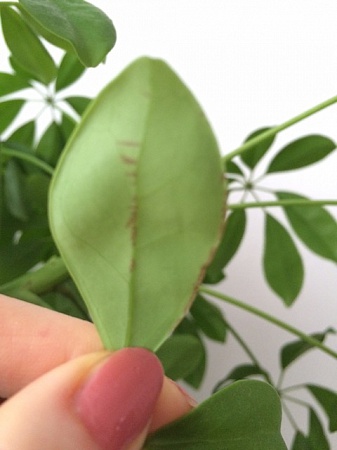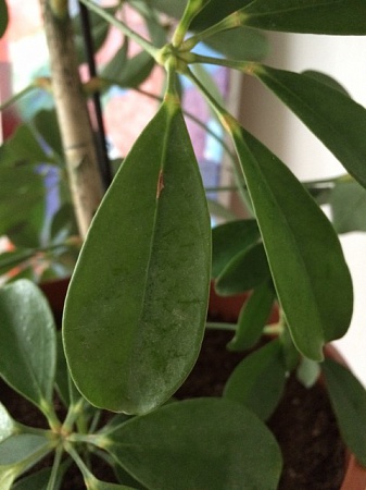Я прочла рекомендованные Вами темы, спасибо, - да, это может быть все, что угодно. Меня больше всего волнует, не завелся ли кто на листочках, - вот эти коричневые мелкие следы на листьях; и как проверить залив, если такой уже большой и тяжелый у нее горшок, - только вынимать? Может быть, бугристость самых новых листьев говорит о заливе? Также неделю назад я заметила, что маленькая часть светлого корня шеффлеры показалась на поверхности земли - мне тогда некогда было, поэтому я просто его присыпала землей.