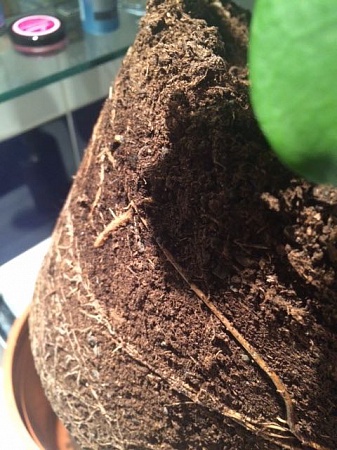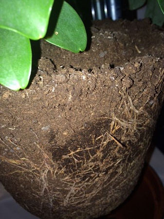 Svetlana54, с корнями все в порядке, но горшок великоват сильно. Раз уж вытащили из горшка, уберите часть керамзита, его должно быть не больше 0,1 высоты корневого кома. Толстый слой дренажа только способствует накоплению влаги в ногах... Толку от него никакого.