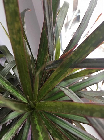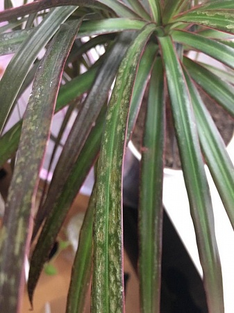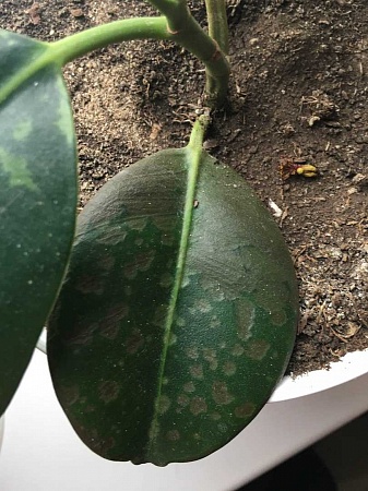 На шеффлере появились вот такие вот пятна. Листья на которых они появились отвалились сразу. Все как обычно полив, освещение. Недавно покупала в магазине цветы новые, может с них что то.......