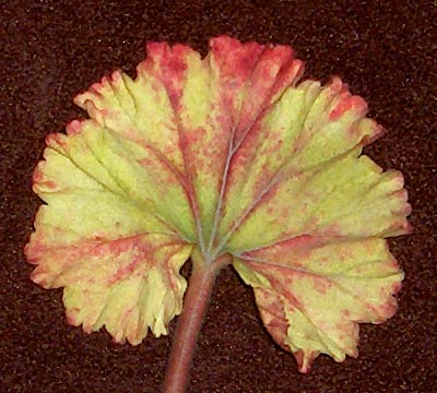 Aeonium пишет: Например на пеларгониях я бы не назвала это ожогом, скорее изменением цвета листвы от излишнего освещения.Вот листик- загоревшего растения через стекло: