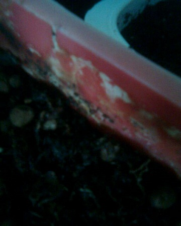 Здравствуйте, помогите определиться, что это такое: на земле какая-то ржавчина, по краю горшков тоже.