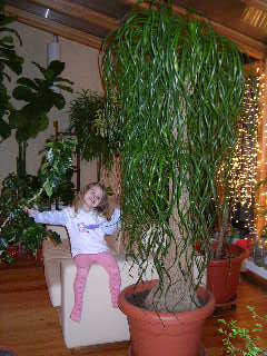 eugeny, Обратите внимание на полив. Зимой нолину надо поливать только когда ствол, точнее его основание - попа, СЛЕГКА станет мягким. И поливать понемногу. В таком режиме экономии ваша нолина будет растить попу вширину, а если землю держать чуть влажной, то ствол будет расти в высоту и будет существовать угроза загнивания. Летом нужно поливать чаще, но тоже при потее тургора. Ну и свет конечно, как уже присоветовали, летом желательно на полное солнце вывесить на балкон. У меня при таком одержании нолина пибавляет 1,5см в диаметре за год. (каждую осень выковыриваю впившиеся в попу камешки с поверхности грунта:) Плюс листья сильно выросли сейчас порядка 1,5-1,8 метра, несмотря на то, что кот года 3 назад объел их почти полностью, гад