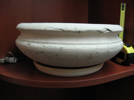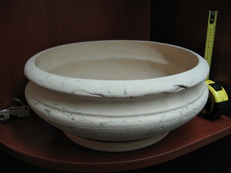 Внутри размеры 9Х24 см (между "луковкой" и краем 3-4 см получится с каждой стороны) Заужения к верху (такого, как кажется снаружи) почти нет, так, маленькая каемка. Собирался сделать какой-то суккуленто-микс, но, может как раз для этого случая лучше пойдет?