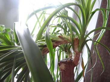 Типичная картина . Горшок велик непомерно, ствол, по-видимому, гниет и уже давно. Для нолины не характерно такое вытягивание стволов. Приходится предположить, что и света ей постоянно не хватало.