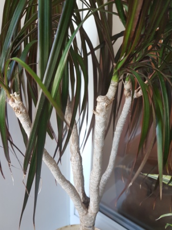 Просто мотивировочные фото 20-летней драцены marginata. Первые 10-12 лет драцена росла в один ствол, по полметра в год, в результате чего ее приходилось пилить раз в 4 года. Потом она решила дать два ствола, а в последнюю спилку у нее проснулось 7 почек роста. 5 активно выросли, а две до сих пор в "зачаточном" состоянии. Как всегда, выявился лидер (доминирующий ствол), который начал всех давить. В феврале я его тоже спилила, и там на спиленном участке уже что-то наклюнулось. (Солнца не хватает просто ужасно!). Теперь драцена так бешено не растет, стоит маленькая и кудрявая. И отдельно ее "ноги".
