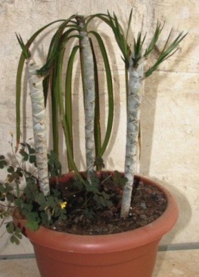 По-моему, кто-то когда-то спрашивал, как заставить ветвиться драцену... Помог случай: собака уронила горшок, и две верхушки из трех отломались. Дальше видно на фотке: (Третью вершушку отрезал сам, позже).