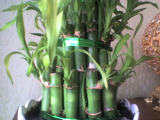 Было дело, померла у меня естественной смертью декоративная пирамидка из бамбука, стволики сгнили, как и положено было со временем по сценарию. Остались отростки 4-6 см высотой. На форуме советовали укоренить и посадить в землю, не верила что что-то из этого выйдет, мелочь такая сажать нечего, но укоренила, сложила пирамидкой и так посадила. Прошел год, вот такая красота вымахала, высотой 22 см. Даже кот зауважал и перестал пытаться это съесть )))