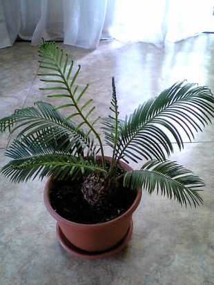 У меня цикас растет 3 года. Куплен малюсеньким. Любит летом полное солнце и обильный полив. Зимиой полив сокращаю. 1 год- летом вырос 1 круг листьев, старые пропали 2 год- вырос второй круг листьев, старые не пропали 3 год- листья не выросли, но и не пропали, но зато сильно увеличилась шишика. 4 год- интересно, что вырастет?