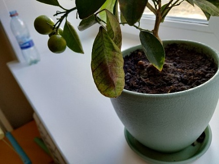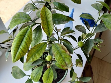 Добрый день! Год назад мне подарили каламондин, ранее с растениями дела не имела. Сразу оборвала с него плоды, весной пересадила. Летом он активно цвел, в этот момент начала подкормку, которую продолжаю до сих пор.. В целом в течение этого года все было прекрасно, но в последние 3 недели цветок начал сбрасывать листья + некоторые листья желтеют и скукоживаются. Мне показалось, что это совпало с началом отопительного сезона. Переставила цветок на другое окно, там дальше батарея и почти постоянное проветривание с балкона. Но листопад и пожелтение продолжаются. Что делать? Поливаю 2-3 раза в неделю, когда земля подсыхает (проверяю пальцем, если земля не прилипает - поливаю). Опрыскиваю ежедневно. Использую водопроводную отстоянную воду.