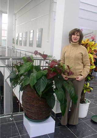 Не уверена, но вроде бы кротон - тоже огромный и очень яркий, а рядом руководитель и организатор выставки Ира Анисова.