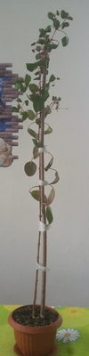 Можно вырастить штамб. Для этого надо прищипнуть верхушку, чтобы она перестала рати в высоту или обрезать стволик на нужную Вам длину (выше веточек, которые стали уже появляться, а сами веточки прищипнуть для дальнейшего кущения). Можно сверху срезать черенок и укоренить, дальше вырастить из него кустик.