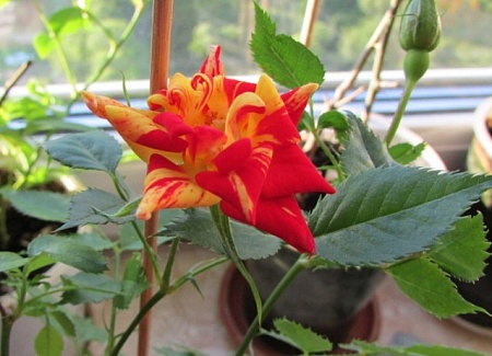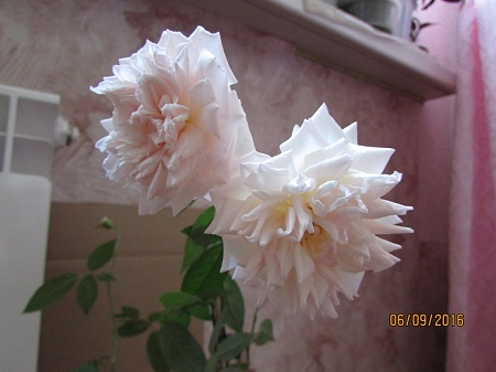 Вот были бы еще подоконники резиновыми, чтоб вместить все хотелки... Долго я не могла написать сюда.. только сейчас получилось.. Начну издали.. В начале девяностых "украла" из учебного центра, куда мы ходили на занятия с классом, небольшой черенок розовой бенгалки, самой обычной бабушкиной, с запахом лепестков, которая на раз укоренилась в простой воде без танцев и бубнов, долго жила, росла и цвела у меня. "Кормила" талой водой, водой от таявшего мяса с кровью, заваркой и на этом всем она прекрасно у меня жила..За десять лет разрослась в пол окна, исправно цвела.. Но вот на одной работе послушала рассказ сослуживца, о том как он свои садовые розы на зиму обрезает, почти под корень оставляя см по 10-15 и о том как они по весне растут с новой силой, и что так же можно и комнатной поступить, а по осени обрезала свою красавицу, но оставила около 30 см, и все... как черт за руку дернул.. не получился у меня такой фокус с моей красавицей.. год стоял голый ствол как я его обрезала ничего не проклюнулось.. а я даже не укоренила черенков, повыкинула все плети, хотя были мысли укоренить парочку... На апрель этого года у меня выжили из всей моей коллекции 4 розы, две от азы, одна из уценки купленная в 2012 году и венгерка принесенная мамой с работы в том же году. Погибли розы от клеща, ничего его не брало, и я не знала чем его уже травить. Раньше хорошо помогал актелик фирмы август, потом когда его не стало чего только не пробовала. Сейчас вот прочла тут про оберон, попробовала вроде помогает. А в апреле он сам пропал когда отключили отопление. Цветение венгерки, она очень похожа на бенгалку, но листья не пахнут, а сам цветок пахнет шиповником..