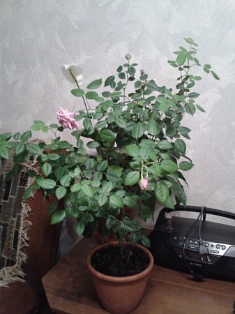 У меня на лоджии с приходом холодов тоже многие розы опомнились и стали расти. Я их домой забрала и досвечиваю. Это садовая Denise Cassegrain пятое цветение с весны.