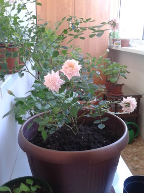 У меня почему-то не получается садовые разводить, хоть и пыталась, даже горшки большие прикупила. Первая и последняя на подвое была миниатюрная Пинк Хилт. Очень качественный саженец был, посадила его в горшок литров на 30, первое цветение было обильным, потом все хуже и хуже, наверно все таки солнца не хватало, прошлой весной отдала ее соседке на дачу, недавно мне фотку на планшете показала, так вся в цветах, даже листвы не видно. Вот два старых фото нашлось.