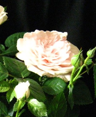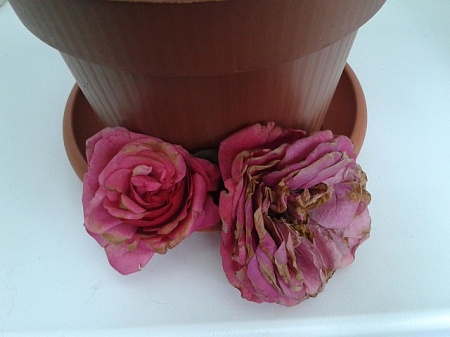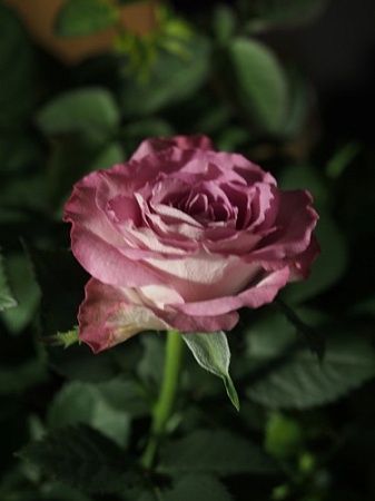 Внешняя сторона лепестков меловая, а внутренняя - розовый окрас в стиле "Прованс".