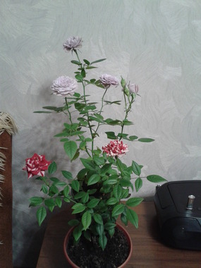 Это цветение первое домашнее,не сильно набитый цветок. Каюсь,запустила розу,сначала клещ одолевал, и я её пересадила в новый грунт, и он ей видимо не пошел, начали чернеть стволики,черенкование не помогло.Роза потеряна к сожалению:(