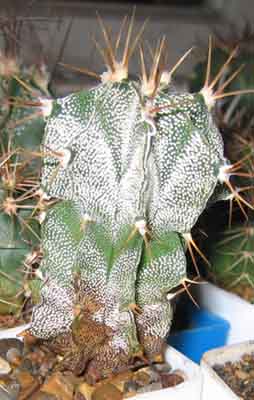 Где-то недавно уже обсуждалась нижняя пятнистость астрофитумов, там я выкладывала фоточку поконкретней, извините, не нашла ее. Но тут тоже видно. Вообще, это у них нормальное возрастное явление, но у орнатумов раньше проявляется, чем у прочих видов (у меня пока остальные "чистенькие", а орнатумы все снизу побурели).