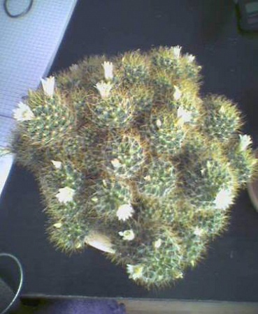 Заодно подскажите, пожалуйста, как этот зверь называется? У него (как бы это объяснить) на круглом стебле выпуклости (соски =)), на них - загнутые на конце красноватые колючки и белые пушинки. Фотография с прошлого года, сейчас он большой, а цвести не хочет.