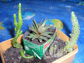 Здравствуйте! Юлия,mvkarpov большое спасибо за ответы! Я попыталась сделать еще фото, чтобы было лучше видно кактусы. На этой фотке теперь уже три кактуса. В середине, как мне сказали, Хавортия. По бокам все те же кактусы. Во-первых, у меня вопрос. Это Хавортия или нет? Последнее время она плохо себя чувствует. Мне ее дали, посадила, но спустя время вычитала, что нужно землю хорошенько утрамбовывать. Посмотрела, обнаружила, что у корней земля плохо утрамбована, к тому же слишком большой горшок. Пересадила в более маленький и утрамбовала. Она у меня стоит на окне, на солнце, комната солнечная. Поливаю по мере подсыхания почвы. Месяц назад давала подкормку. Что не так? Или ей не нужно сильное солнце? Но это же кактус...