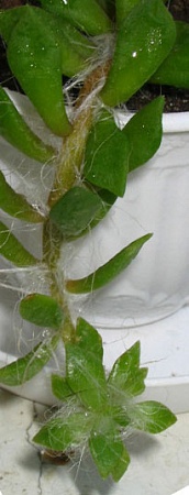 Листочки медленно корни пускают (я когда высаживала, отвалившиеся листики в горшок сюда же насыпала, дак за полгода только корни вылезли и все пока)конечно, но не скажу, что плохо (все листочки корнями обзавелись).. Порубаю на веточки (только не этот - пусть свешивается, а второй еще есть).