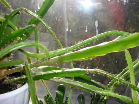 только вот название его не ясно...я полагаю, что можно остановиться на эпифиллуме...он может быть такого вида, т.к. его забрали у охраны, а сами понимаете какие их охранников цветоводы. Что точно знаю, ему там света было маловато...