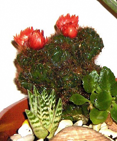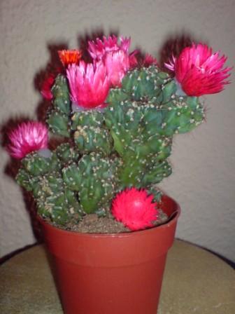 Ой нашла своего в старых фотках , вот он с закрытыми цветами вечером после опрыскивания (я опрыскиваю иногда кактусы с целью помыть от пыли).