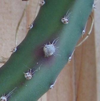 Не очень нравится мне, что все эти пушащиеся ареолы находятся на освещённой стороне - у основной массы кактусов бутоны-то образуются на теневой. Но, возможно, это не касается эпифитов... Вот фото того же побега: