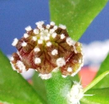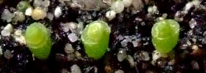 Привитый сеянец myriostigma - cv. Onzuka на перескиопсис, находясь под лампами в тепличке, лопнул, покоричневел и покрылся симпатичным мхом, чего вовсе пока не наблюдается у его корнесобственных собратьев. Не выращиваю ли я симпатичную плесень вместо астрофитума.