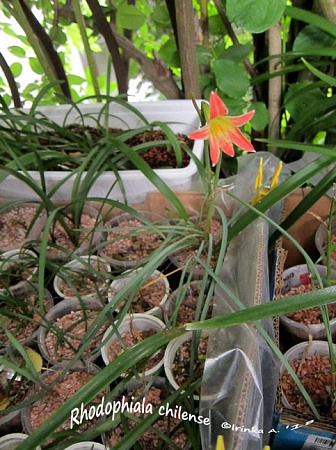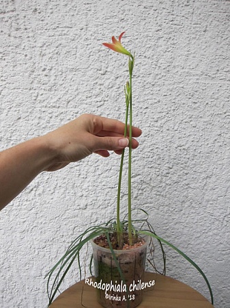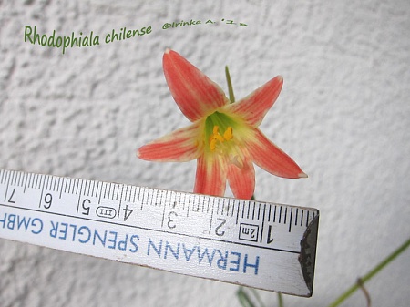 Rhodophiala chilense, двумя цветоносами, по 2 цветочка.