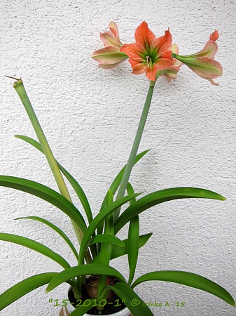 Первое цветение пришлось на 8-й год жизни луковицы, радует, что стрелка в 70см, несла 4 цветка, d=17см., но, без запаха