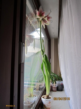 расцвёл Оранж Соверен из Русского Огорода, приобретённый в прошлом году (поэтому может сорт называется по другому, не уверена:) ) . Три стрелки, две зацвели одновременно, третья лезет потихоньку с пучком листьев:) ещё и детка высунулась. Прямо горжусь своим трудяжкой:) На стрелках по четыре цветка ярко-оранжевой окраски 19-20 см в диаметре.[IMG WIDTH=1024 HEIGHT=768][/IMG]