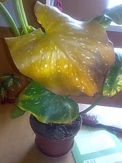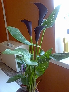 Я ее купила с одним цветоносом,т.е. она цвела! Черную я купила неделей раньше с двумя цветоносами, и она сейчас выдала третий, а эта 3-4 дня постояла, и начала молниеносно желтеть. Я их не пересаживала,т.к. они цвели, поливаю аккуратно. Читала о каллах много, и здесь на форуме, но никто не фоткал их,когда они уходят на покой, поэтому - незнаю - беспокоится, или нет! Помогите мне пожалуйста!!