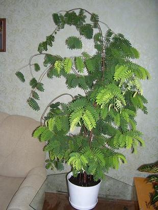 А почему вы так думаете? Я вообще не знала, что выращиваю, просто посадила много семян от фруктов из Таиланда, взошли только эти. Сеянцы сначала я распознала как сесбанию, но у нее семена мелкие оказались, а тут были крупные косточки. Посажены они с интервалом в год, сначала один, потом два, потом четыре. Остальные саженцы раздарила. А у вас не сохранилось семян? Листики он складывает на всех веточках, не только на молодых. А усекновений я ему не делала, он сам переодически сбрасывает часть листьев и потом начинает ветвиться. Этой зимой я его не поливала два дня, а дома было очень жарко, так он пересох и сбросил все листья. Потом оброс к весне. Пишут, что цвести и плодлносить он может в пятилетнем возрасте. Жду!