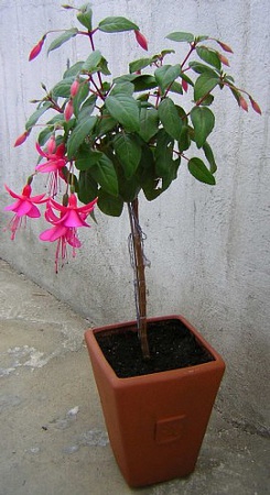 Lucy, зашла на твои фуксии посмотреть - ну просто отпад! Я в восхищении. Где ж у нас все эти сорта берут? Я бы себе еще одну заимела, махровенькую. и что интересно, у тебя они вроде маленькие, а цветут. У меня образовался один кустик этим летом, так пока в куст не вымахал - не зацвел. Сейчас стоит почти лысый, и с белокрылкой. Вот я из него задумала штамб сделать - оставила один побег и к палке привязала, а остальные не знаю, когда обрезать. Давай фотку фуксиевого штамба. Я вообще штамбы люблю, и гибиск пестролистный у меня в таком виде. Вполне ничего смотрелся, только вот цвести отказался. Из фикусов хочу штамбов наделать. А мой любимчик пестролистный - кайма белая, а листики см 2,5 в длину, не больше.