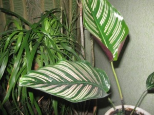 ух ты какой огромный я не поняла думала отросток,да она не очень большая хотя я видела и большую незнаю возможно от условий содержания зависит или бывают и большие и мини, у меня где то 25см. Зебрина у меня тоже мальненькая нашла фотки внизу листья совсем маленькие а на верху лопухи..какие у вас еще есть калатеи и тому подобные.