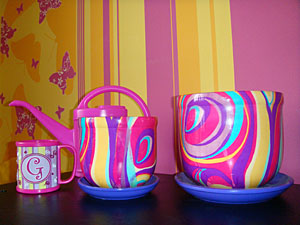 Девочки! Похвастаться хочу : вот какие развесёлые кашпо и глОмурную розовую лейку прикупила в новую квартиру )))