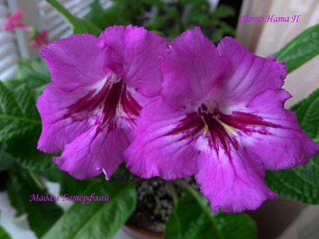 Еще раз здравствуйте! Цветов в моем доме очень много. Есть любимчики которые "живут" со мной годами, есть "гости", которые отправляются потом по знакомым и на работу. У меня есть красивый белый декабрист, 7 кустиков герани разных цветов, фиалка махровая темно-фиолетовые цветки по краю будто посыпаны белым снегом, Раньше было 8 фиалок, но обыкновенные, разного цвета, только в душу не запали, и все "ушли", осталась только одна красавица.Есть амарилис несколько луковиц, но красного цвета с белой сердцевиной. С удовольствием обменялась бы с кем нибудь на другой цвет. Есть 2 вида маранты, фикус пестролистный, хролофитум. В последнее время развожу глаксинии. У меня есть белая с листьями коричнево-зеленого цвета, фиолетовая.Покупала несколько раз семенами, не взошла. Любимчики - драцена, мирт, большой папоротник, я его еще монстриком зову.А еще очень люблю строманту, только вот в последнее время что то чахнет моя красавица. Есть краснолистная кислица, все ей восхищаются. Очень нравятся цикломены, только никак они у меня не приживаются. Несколько раз мне дарили цикломены, цвели полтора, два месяца, потом засыхали - и все. Очень хотелось развести Антуриум, несколько раз покупала - результат тот же, что и с цикламенами. В конце концов надоело деньги выкидывать. Есть большая Толстянка. В любимчиках - Щучий хвост - 2 вида и Зомиаокулькус. Есть еще другие цветы, если честно названий не знаю. Конечно в энциклопедии найти можно, но не очень хочется, растут и растут. Всех видимо утомила свой писаниной, остальное в следующий раз.