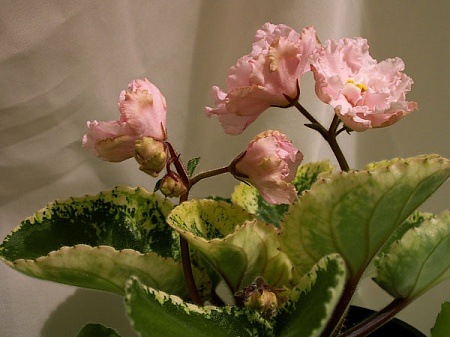 Продолжу... Хочу показать цветение фиалки-миниатюры Rob's Dust Storm. Нравится она мне забавно и весело окрашенными цветочками.