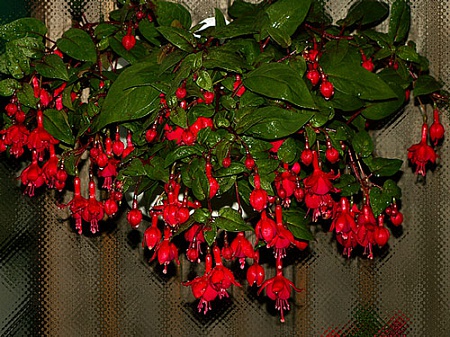 Цветение фуксии "Marinka" на даче в жаркое лето 2010 года. Сколько раз мои попытки выращивания фуксии оканчивались плачевно: не переносили они жарких летних дней на даче... И вот только Marinka подтвердила звание самой терпимой к жаре фуксии. Всё лето провела на северной стороне дома и ежевечерне принимала душ из шланга вместе со всеми садовыми растениями...