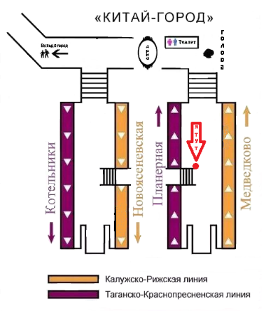 Стоять буду у перехода между платформами в центре зала. К сумке будет приклеплен платок с котиками.