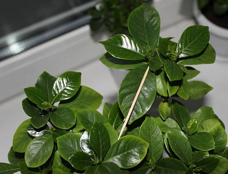 Если с корнями, то сколько времени прошло (смотря на ваш стаканчик с зеленоватым налетом, думаю что времени прошло достаточно), обычно корневая у гардений нарастает быстро, у вас это не происходит, по-видимому растению не нравится грунт, в который вы его посадили.