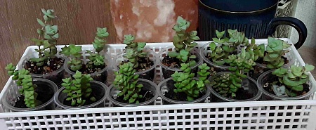 1. Патрисия, недавно укорененные черенки 300. Срезала со старой плети, поэтому некоторые листья повреждены. Черенки в активном росте