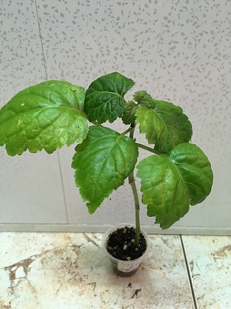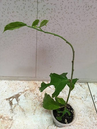 Hibiscus grandidieri. Или "Китайский Фонарик". Оригинальные цветы, компактная форма роста. Черенок уже показывает боковые росты. 400 р.Заказан.